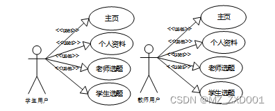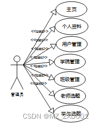 The main users of the graduation project online topic selection system are administrators, teacher users, and student users. The functions include: homepage, personal information, user management (administrators, student users, teacher users), college management, class management, teacher topic selection, student question selection, and other functions.