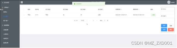 (5)出库信息:点击“出库信息”这个按钮可以查看到所有的出库信息,支持通过货物编号或者货物名称进行查询出库信息,如果想要了解某一出库的详细信息,点击后面的“查看”会进入详情界面,同时可以对员工提交的出库进行货物添加,选择某一出库,点击后面的“发货”按钮,根据提示输入对应的信息,点击“提交”后,发货成功了;