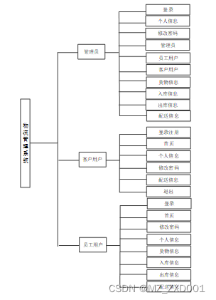 系功能模块的设计就是把系统具体要实现哪些功能,功能如何划分做一个系统的架构,以模块图的方式展示出来,方便我们进行功能得罗列以及涉及。在系统的功能方面,项目分成了管理员+客户用户+市发改委三个模块,每个模块登录进去对应相应的功能,具体的功能模块图如图3.1所示。