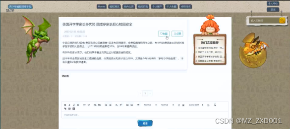(4)编程资讯:用户可以查看编程资讯信息,在查询到自己想要了解的编程资讯的时候,可以进入查看详细的介绍进行评论、点赞、收藏操作。