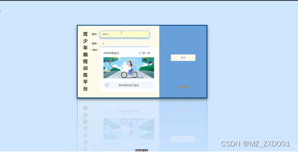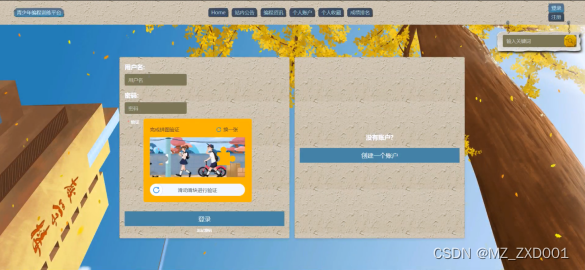 青少年编程训练平台中的前台上注册后的用户是可以通过自己的username和password进行登录的,当用户输入完整的自己的username和password信息并点击“登录”按钮后,将会首先验证输入的有没有空数据,再次验证输入的username和password在数据库中当前保存的用户信息是否一致,只有在一致后将会登录成功并自动跳转到青少年编程训练平台的首页中;否则将会提示相应错误信息,登录界面如下图4.3所示。