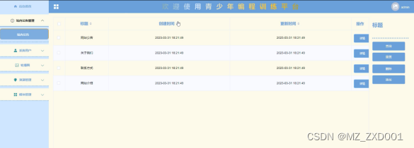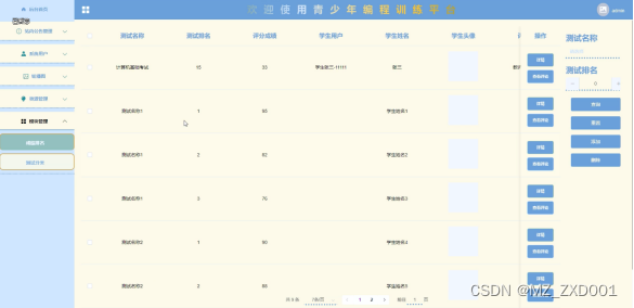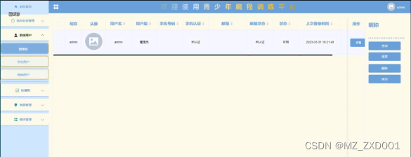 青少年编程训练平台的理员拥有最高的权限,可以对用户信息、系统信息以及青少年编程训练平台相关信息进行管控。