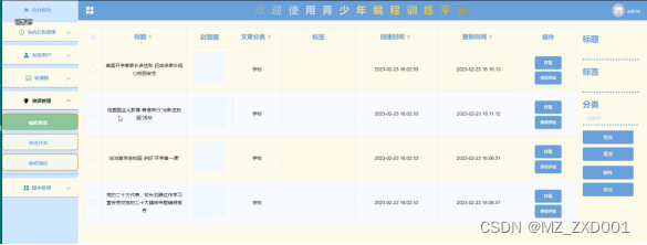 (6)资源管理:管理员可以对青少年编程训练平台前台展示的编程测试、编程资讯以及资讯所属的分类进行管控。