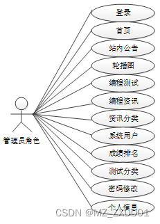 青少年编程训练平台中管理员角色用例图如图2.2所示: