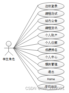 青少年编程训练平台中学生用户角色用例图如图2.1所示: