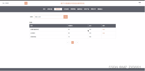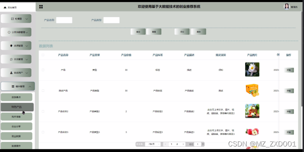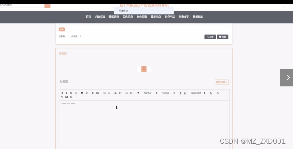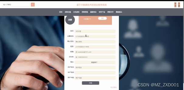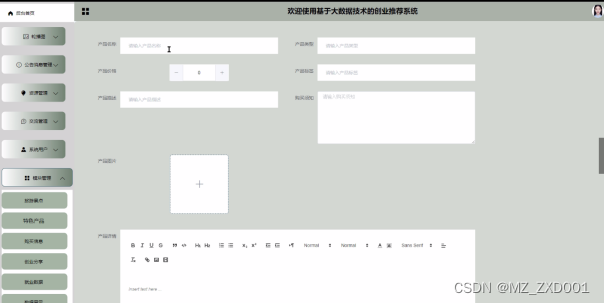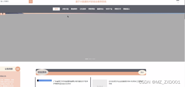 This design mainly implements a business recommendation system based on big data technology that combines the advantages of humanization, efficiency, and convenience, and completes the rotation chart, announcement message Resource management (entrepreneurship information, information classification, data survey) System user (administrator, ordinary user) module management (homepage, help exchange, announcement message, entrepreneurship information, tourist attractions, featured products, entrepreneurship sharing, employment data, data display) and other functional modules. The system communicates with the server through a browser to achieve data interaction and change. This system improves work efficiency and reduces errors and omissions in data storage through scientific management methods and convenient services. The entrepreneurship recommendation system based on big data technology uses Java language, uses SSM technology based on MVC mode for development, and uses MyEclipse 2017 CI 10 compiler for writing. In terms of data, it mainly uses Microsoft's MySQL relational database as the data storage medium, and cooperates with the previous HTML+CSS technology to complete the system development.