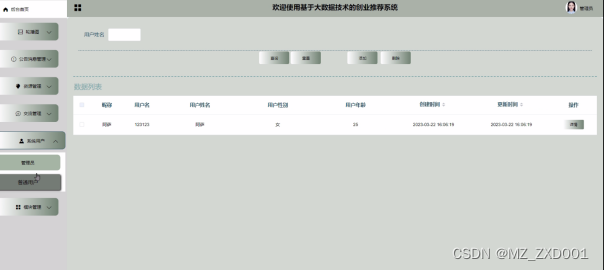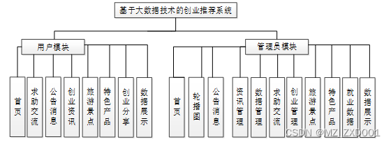 基于大数据技术的创业推荐系统 是个现代化的高度集成的综合信息系统,系统主要服务对象为用户,最大化在页面中提供多的信息,因此在系统维护上,数据量较大,整体的维护设计如下: