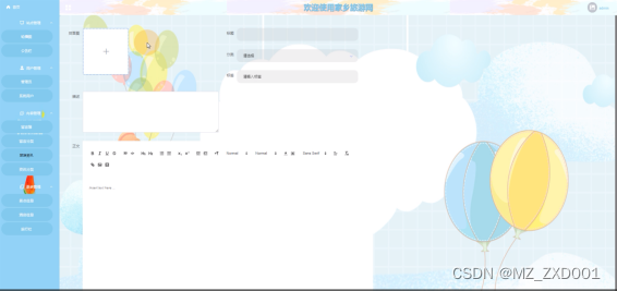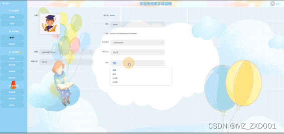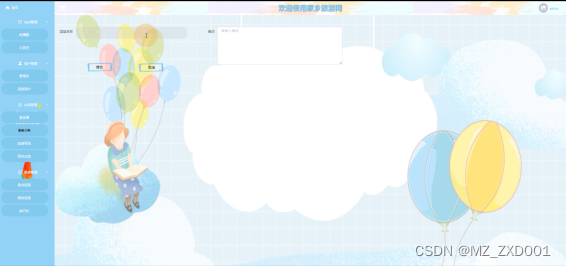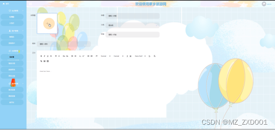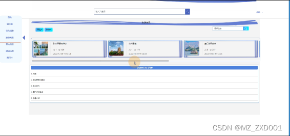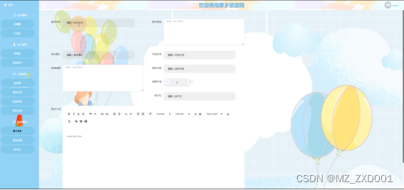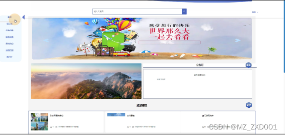 (1)功能要求:可以管理首页、站点管理(轮播图、公告栏)、用户管理(管理员、系统用户)、内容管理(留言薄、留言分类、旅游资讯、资讯分类)、更多管理(景点信息、酒店信息、旅行社)等功能模块。