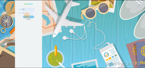 管理员登录,通过填写账号、密码等信息,输入完成后选择登录即可进入SSM家乡旅游网,如图5-1所示。