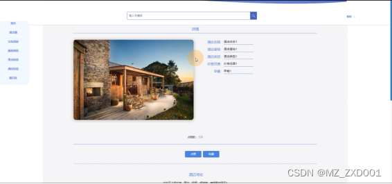 酒店信息,用户可在酒店信息页面可以查看酒店名称、酒店星级、酒店类型、酒店设施、酒店地址、价格范围、早餐、酒店图片、酒店简介等详细信息,并可根据需要对酒店信息进行点赞、评论或收藏等操作,如图5-14所示。