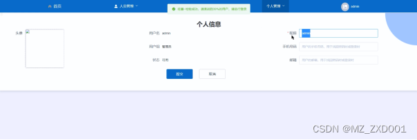 管理员和车主用户点击“个人信息”按钮,可以对个人的头像、昵称、手机号码等信息进行更新;