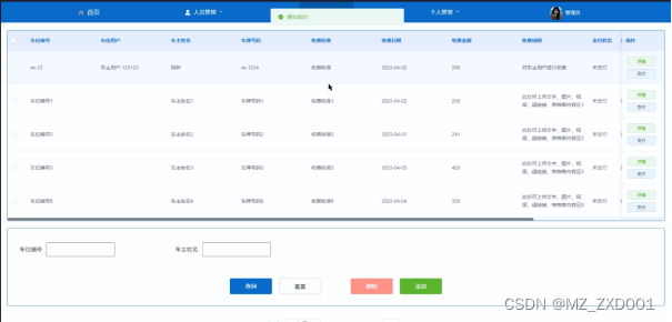 用户选择车辆收费添加支付记录,管理员审核车辆收费信息,管理所有用户的车辆收费记录。