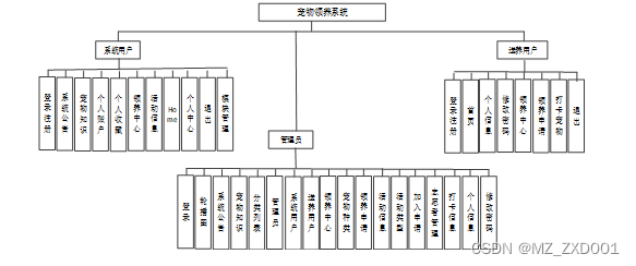 按照宠物领养系统的角色,我划分为了系统用户、送养用户和管理员这三大部分。