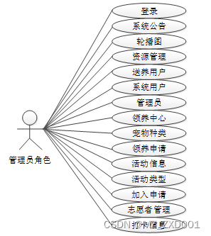 web后台管理上的管理员是维护整个宠物领养系统中所有数据信息的。管理员角色用例如图2-4所示。