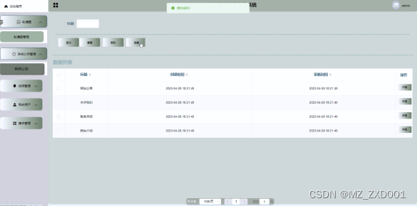 (3)系统公告:管理员点击“系统公告”菜单可以查看到系统中的所有系统公告信息,对已经存在的系统公告,管理员可以修改,也可以添加新的公告或者删除公告。
