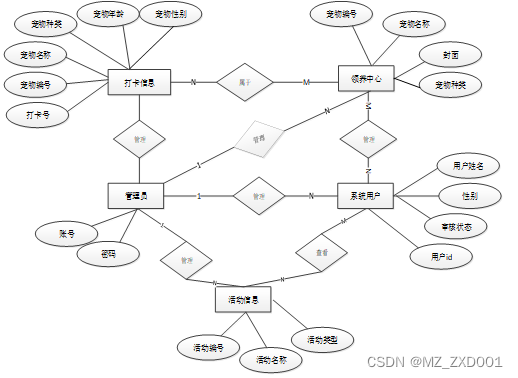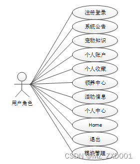 通过2.3功能的分析,得出了本宠物领养系统的用例图:
