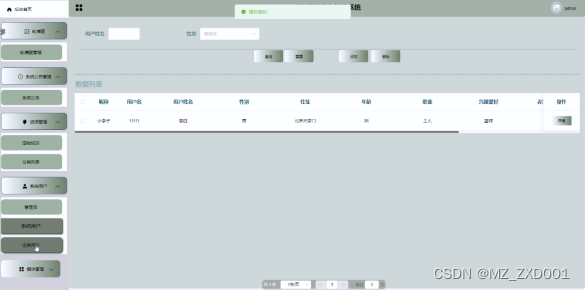 (4)系统用户:管理员点击“系统用户”菜单可以对系统中存在的用户进行管理,包含了管理员用户、送养用户和系统用户。