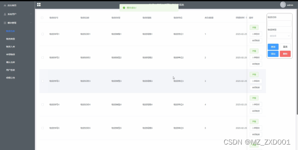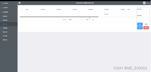 | 1 | 选择一个物资,点击入库按钮,输入该物资入库数量 | 入库成功 | 入库成功 | |||||