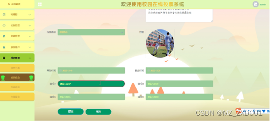 投票信息,在此页面可以查看现有的投票活动,并可根据需要进行重置、添加和删除等详细操作,如图5-4,5-5所示。