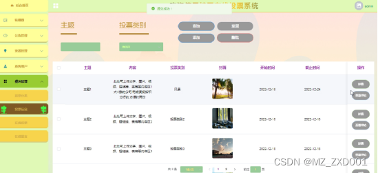 投票信息,在此页面可以对投票活动进行增删改等操作,如图5-13所示。