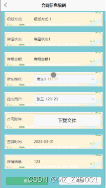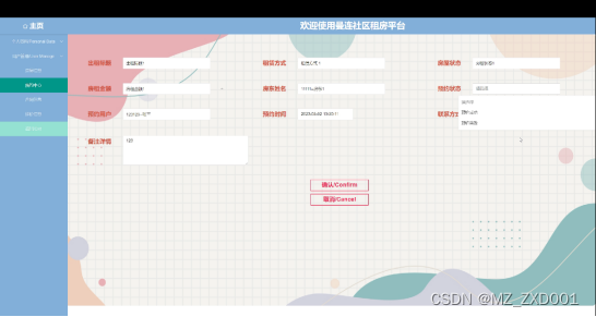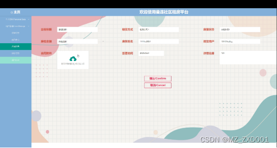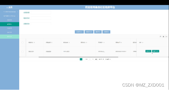 合同信息管理,在此页面可以查看完成租房的合同信息,还可以进行添加、删除,上传等操作,如下图所示。