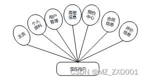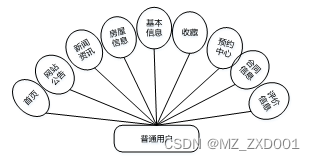 (3)普通用户,主要功能有:网站公告,新闻资讯,房屋信息,我的(基本信息,收藏,预约中心,合同信息,评价信息)。用例图如图3-3所示。