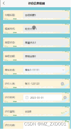 评价信息,在此页面可对租房进行评级反馈。如下图所示。