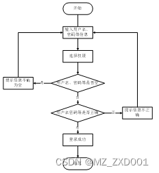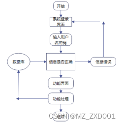 用户打开并进入系统后,会先显示登录界面,输入正确的用户名和密码,系统自动检测信息,若信息无误,则用户会进入系统功能界面,进行操作,否则会提示错误无法登录,操作流程如图3-3所示。