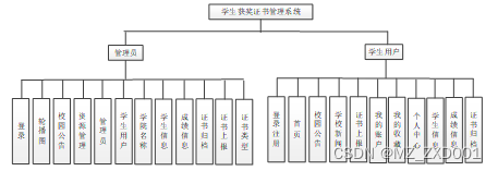 学生获奖证书管理系统划分为了学生用户模块和管理员模块这两大部分。
