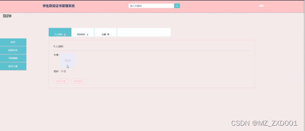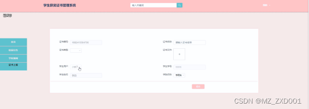 系统管理也都将通过计算机进行整体智能化操作,对于学生获奖证书管理系统所牵扯的管理及数据保存都是非常多的,例如管理员;首页、 轮播图(轮播图管理)校园公告管理(校园公告)资源管理(新闻列表、新闻分类)系统用户(管理员、学生用户)模块管理(学院名称、学生信息、成绩信息、证书上报、证书归档、证书类型)等,这给管理者的工作带来了巨大的挑战,面对大量的信息,传统的管理系统,都是通过笔记的方式进行详细信息的统计,后来出现电脑,通过电脑输入软件将纸质的信息统计到电脑上,这种方式比较传统,而且想要统计数据信息比较麻烦,还受时间和空间的影响,所以为此开发了学生获奖证书管理系统;为用户提供了方便管理平台,方便管理员查看及维护,并且可以通过需求进行内容的编辑及维护等;对于用户而言,可以随时进行查询所需信息,管理员可以足不出户就可以获取到系统的数据信息等,而且还能节省用户很多时间,所以开发学生获奖证书管理系统给管理者带来了很大的方便,同时也方便管理员对用户信息进行处理。