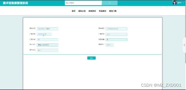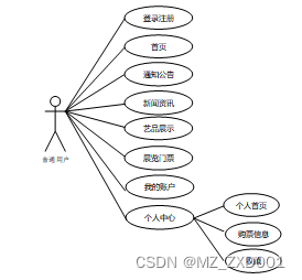 按照基于Spring Boot技术的美术馆售票管理系统的角色,划分为了普通用户模块和管理员模块这两大部分。