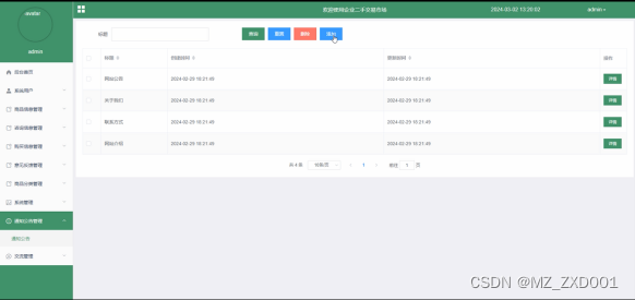 This article elaborates on the system design and implementation process of the second-hand trading market for enterprises. The system aims to provide enterprises with an efficient, convenient, and secure second-hand commodity trading platform to promote the recycling of internal resources, reduce operating costs, and enhance the sustainable development ability of enterprises.