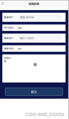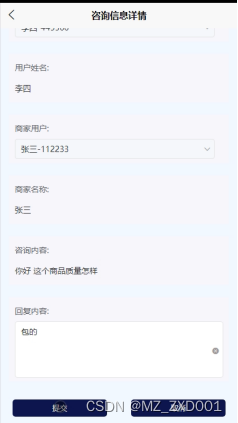 商家用户点击我的“咨询信息”这一菜单,可以查看和回复用户的咨询信息。界面如下图4-10所示。