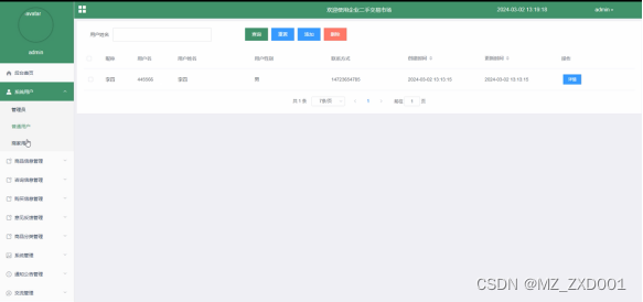 管理员点击“系统用户”这一菜单会显示管理员、普通用户、商家用户这三个子菜单,管理员可以对这三个角色的信息进行增删改查操作。界面如下图4-12所示。
