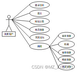 系统用户: 管理系统内的用户信息,包括商家用户和普通用户的账户信息和权限设置。