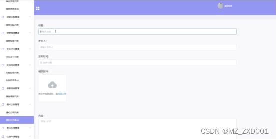 管理员发布通知公告,系统显示通知公告,通知公告添加功能主要指对其一些基本信息的添加、删除和修改。