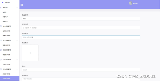 管理员发布新的失物招领,系统显示失物招领,失物招领添加功能主要指对其一些基本信息的添加、删除和修改。