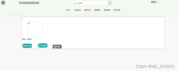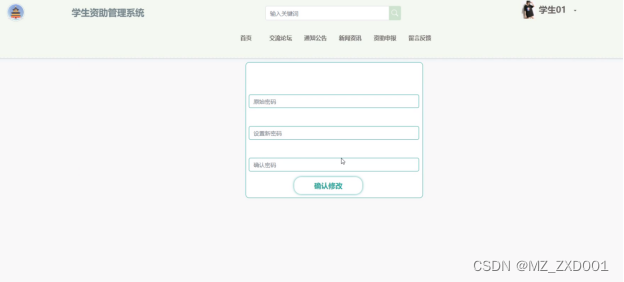 (5)资助申报:这个功能模块是学生进行资助申请的入口,学生可以在线填写资助申请信息,管理员可以审核回复。