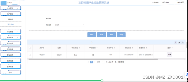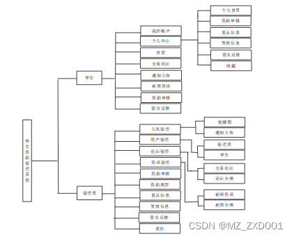 学生资助管理系统我划分为了学生管理模块,管理员模块这两大部分。