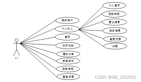 图2-1 学生资助管理系统学生用户角色用例图