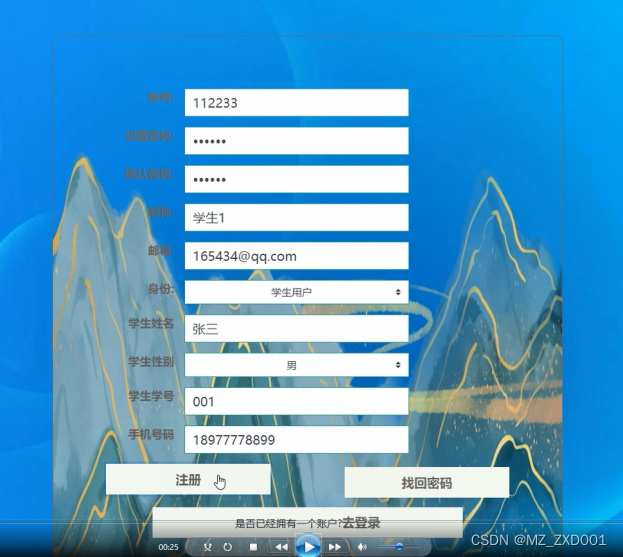(1)用户注册登录:学生可以随时进入到系统中,对系统中的信息浏览,但是想要实行操作,就必须有这个系统的账号,如果没有账号的话,可以注册成员用户进行相关的操作。