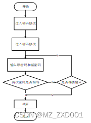 用户通过提供当前密码和新密码进行密码修改操作。系统将验证当前密码的准确性,并确认新密码的合法性和安全性。如果验证通过,则更新用户账户中的密码信息。密码修改功能的设计应考虑密码强度要求、用户友好性和安全性等方面,以确保用户能够方便、安全地修改自己的密码。密码修改流程图如下所示。