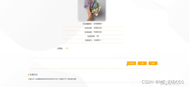 用户可以通过系统查询特定垃圾的分类、处理方式等相关信息。用户提供垃圾名称或关键词进行查询,系统将根据输入进行匹配并展示相应的垃圾信息。用户可以查看垃圾的分类类别、处理方法、可回收性等详细信息。界面如下图所示。