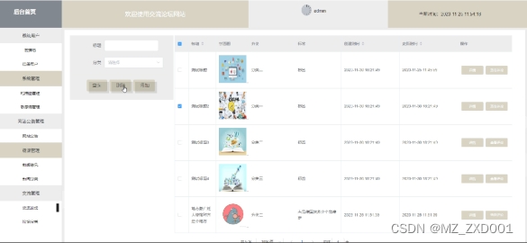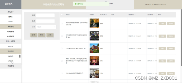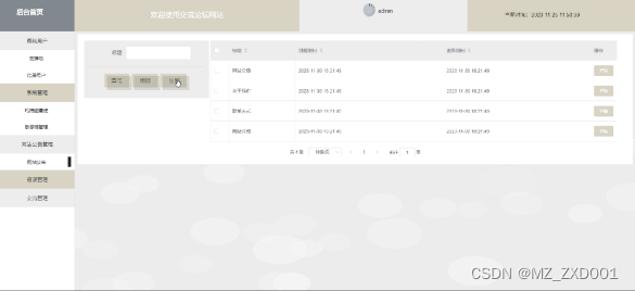 网站公告管理界面逻辑代码如下:
