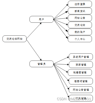本论坛网站有管理员和注册用户两个角色。管理员功能有后台首页、系统用户管理,系统管理(轮播图管理、敏感词管理),网站管理,新闻资讯管理,资讯分类管理,论坛分类管理,交流论坛管理等。用户功能有个人中心,交流论坛管理,我的收藏管理,系统管理等。普通管理员有首页,交流论坛,网站公告,新闻资讯,我的账户,个人中心(个人首页、交流论坛、收藏)等。因而具有一定的实用性。