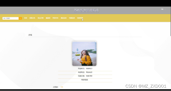景点介绍:提供详细的景点介绍,包括景点的历史背景、文化特色、地理位置等。展示景点的图片,以及相关的评论和评分。显示景点的开放时间、门票价格和交通指南等实用信息。界面如下图所示。
