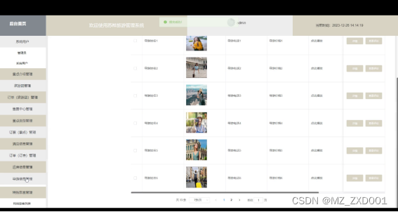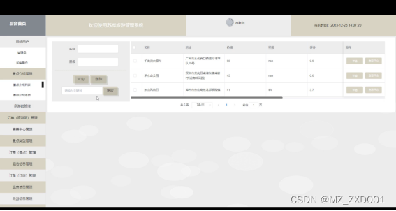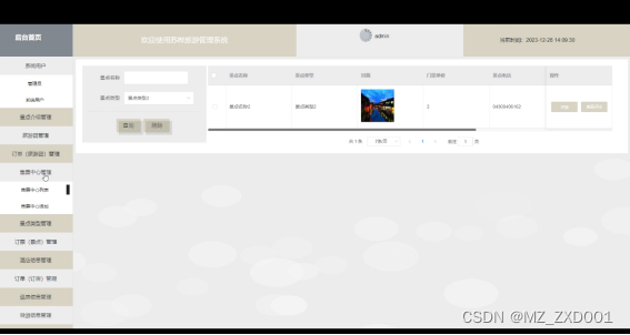 - 订票(景点)管理:查看和管理用户的景点门票订单,包括支付状态、使用日期等。允许管理员取消或修改订单等。