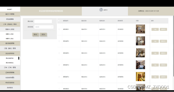- 订单(订房)管理:查看和管理用户的酒店房间订单,包括入住日期、退房日期等。允许管理员取消或修改订单,并提供订单号和入住凭证。
