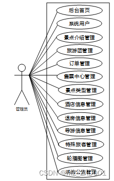 旅游管理系统中管理员用例图如图2.2所示: