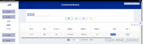 通过引入SSM框架,系统具备良好的灵活性和扩展性。管理员可以通过简洁直观的操作界面,实现高效的管理和便捷的服务流程,提升养老院管理的效率和 居民的生活质量。